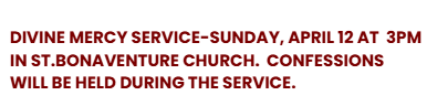Saturday from 3:00-4:15pm and after evening Mass until 6 p.m.